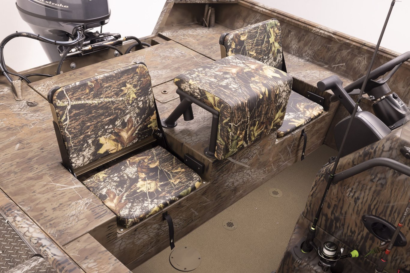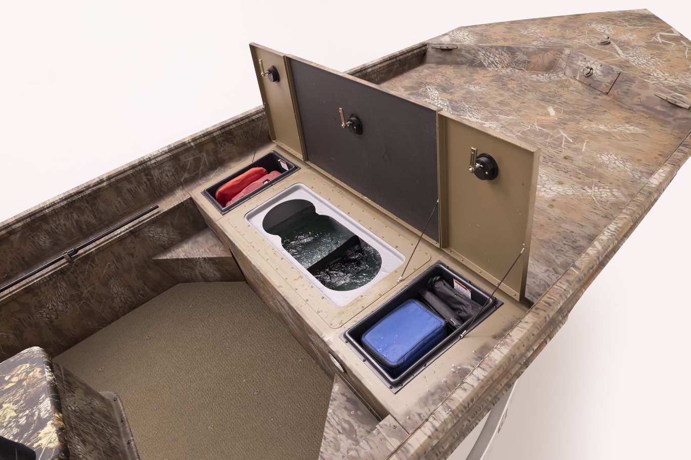 CENTER CONSOLE A place for everything… the center console design helps all anglers on board organize their gear, and also provides a grab rail, cupholder, and extra seat. |