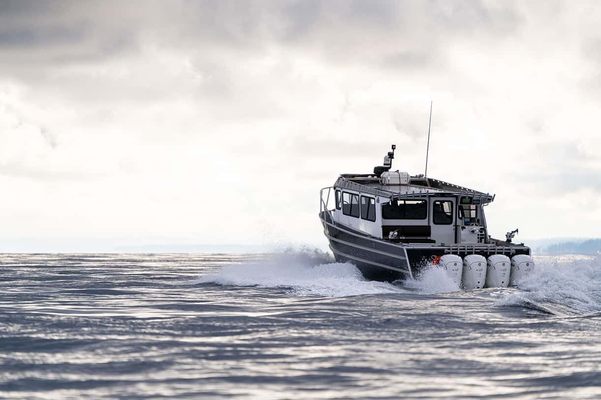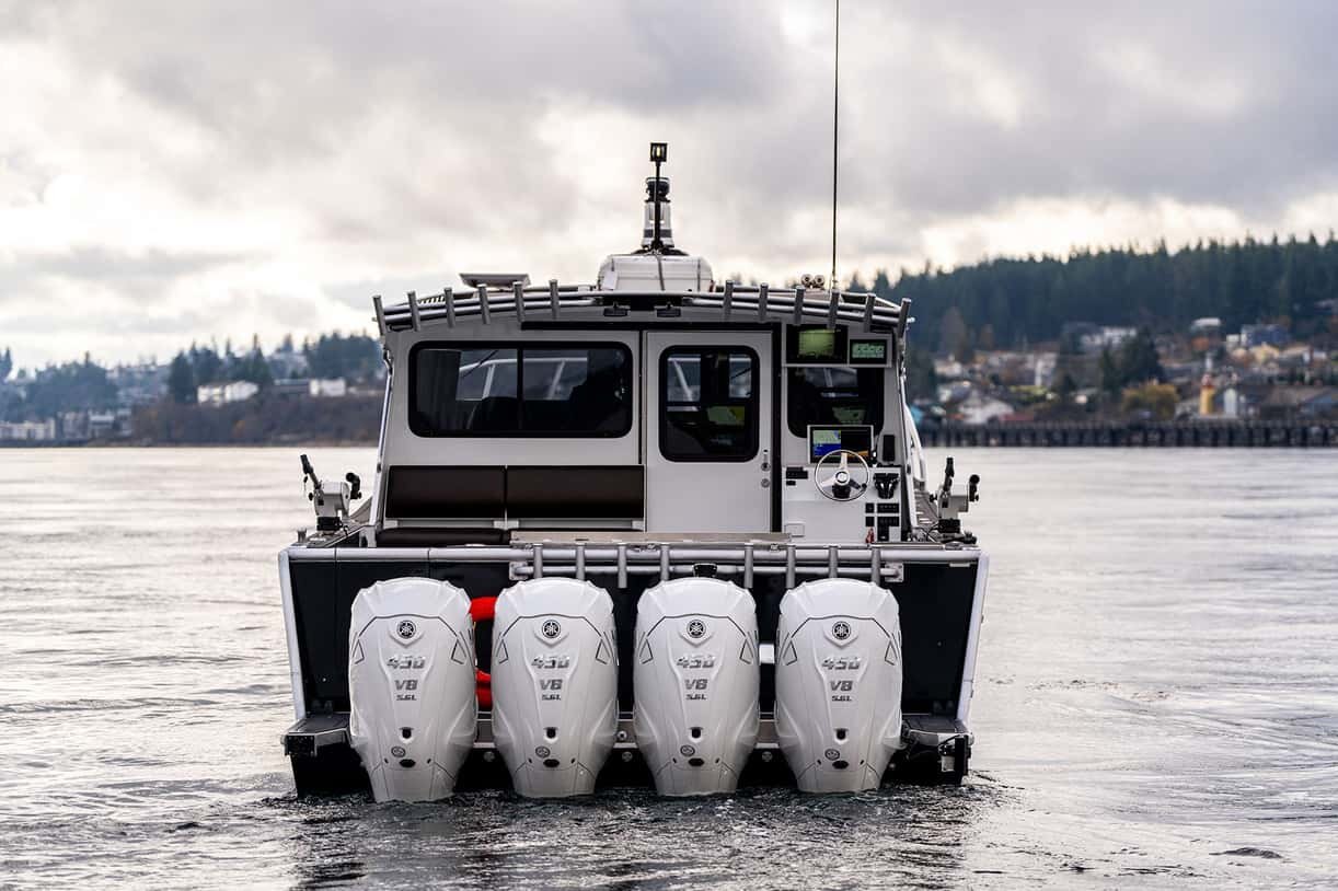 Below 2500 rpm, engine exhaust is directed away from the propellers for "cleaner" water and added bite in both forward and reverse, maximizing command and control at lower speeds.