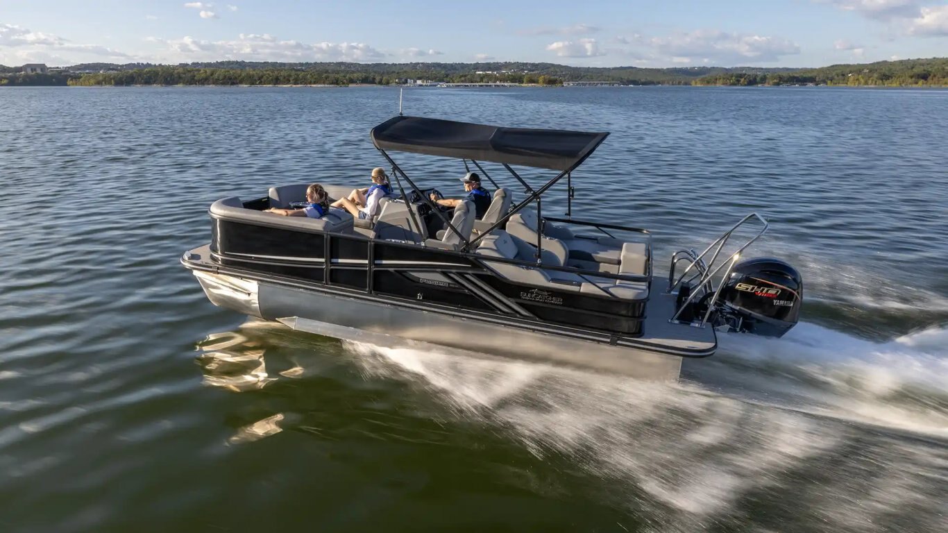 DESIGNED FOR COMFORT Ergonomic seating and streamlined helm – all day comfort. Not a bad seat on this pontoon. Made for making memories on the water....