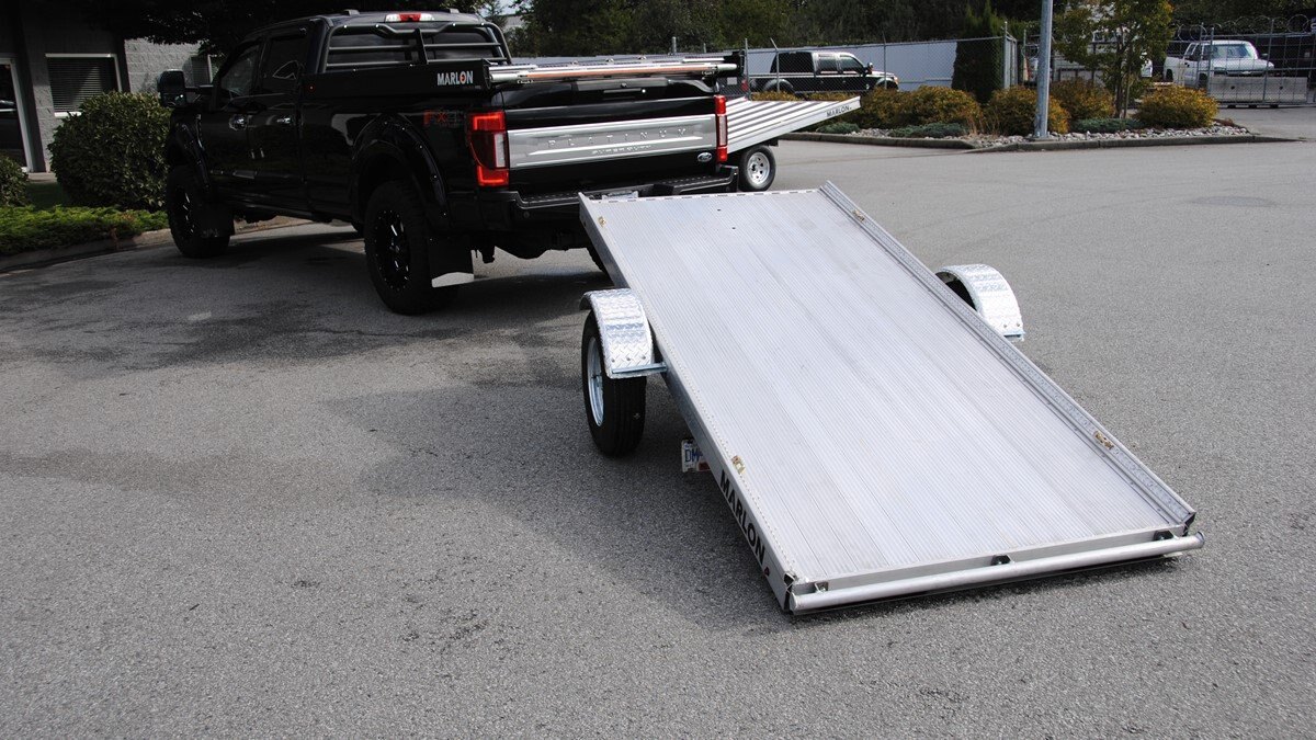 The Marlon New Product development team sat down with the goal of developing a trailer that would do more, could be used for Multiple uses and could be used in Multiple seasons. Development code name was MultiFunctional Trailer. We wanted it lite so it can be towed behind a selection of vehicles to haul your sled, ATV, Trail SxS, stack of wood …………that’s why it is all alumi...